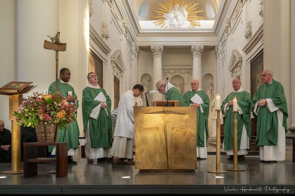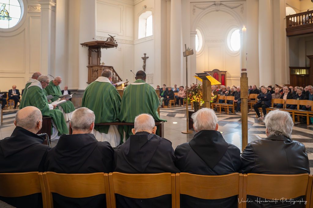Ordegenoten uit Affligem en Dendermonde kwamen vanavond het 900-jarig bestaan van onze abdij mee vieren. Naar aanleiding van hun bezoek en de najaarsexpo “Het verhaal van Vlierbeek: 900 jaar leven in de abdij” ging abt Gerard Van Malderen, samen met enkele van zijn medebroeders, voor in een feestelijke eucharistieviering.