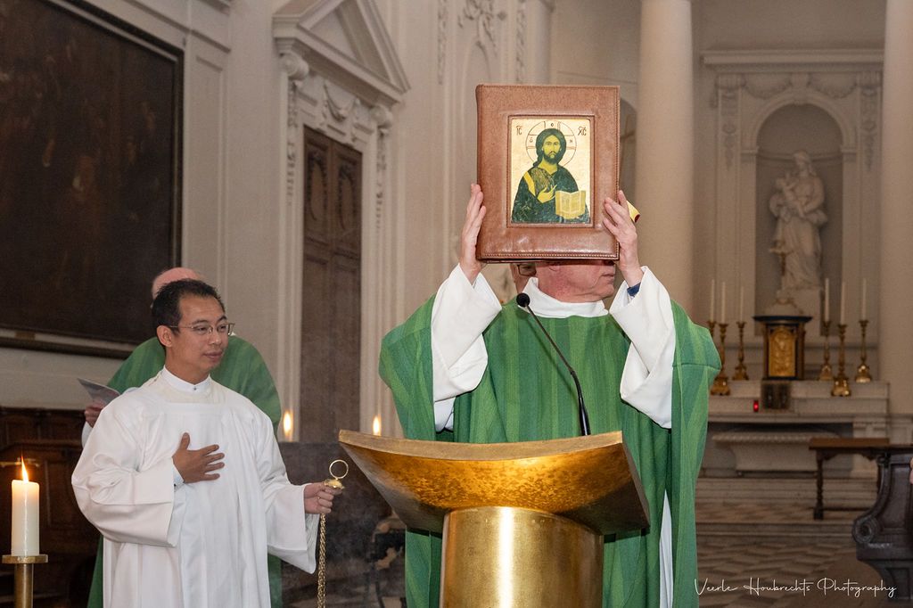 De viering werd opgeluisterd door gregoriaanse gezangen, afgewisseld met passende orgelmuziek. Eeuwenlang hebben monniken dag en nacht Gods lof bezongen in de Abdij van Vlierbeek. Vandaag treden benedictijnen opnieuw in hun voetsporen. Zo blijft de band tussen verleden en heden ongebroken, en stijgen de harmonieuze klanken van het eeuwenoude gebed als wierook op ten hemel.
