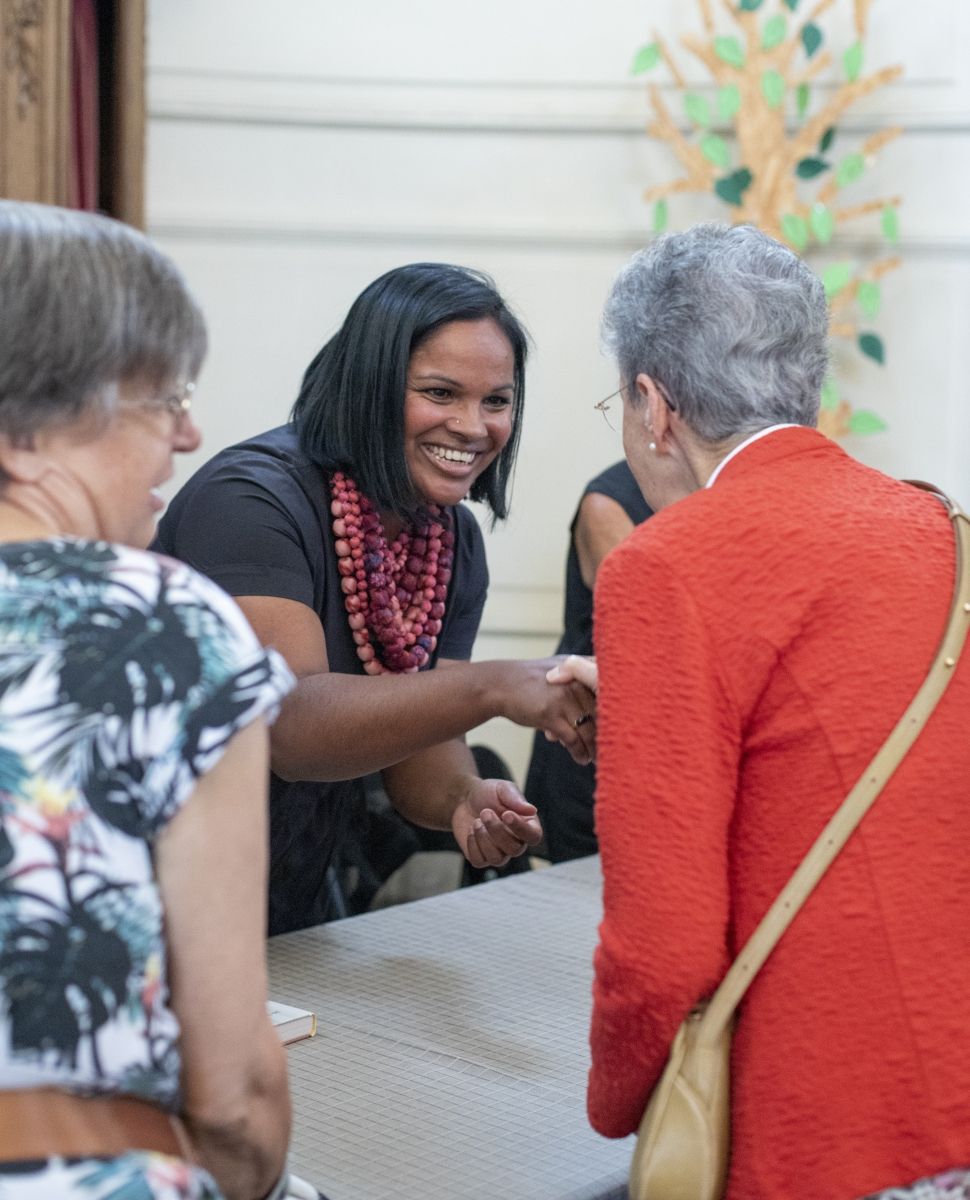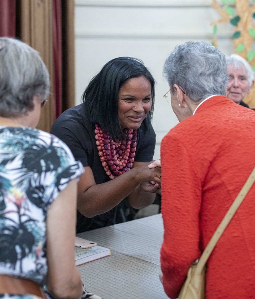 De kern van haar boodschap vatte ze zelf samen als ‘in de ander een gelijke zien’. ‘Hoeveel mensen zullen we nog weerloos de woestijn in sturen?’ daagde ze ons uit. En gaf ze ons te denken. Haar oproep om verbinding te maken, onderstreepte ze met een Afrikaans spreekwoord: ‘If you want to go fast, go allone. If you want to go far, go together!’