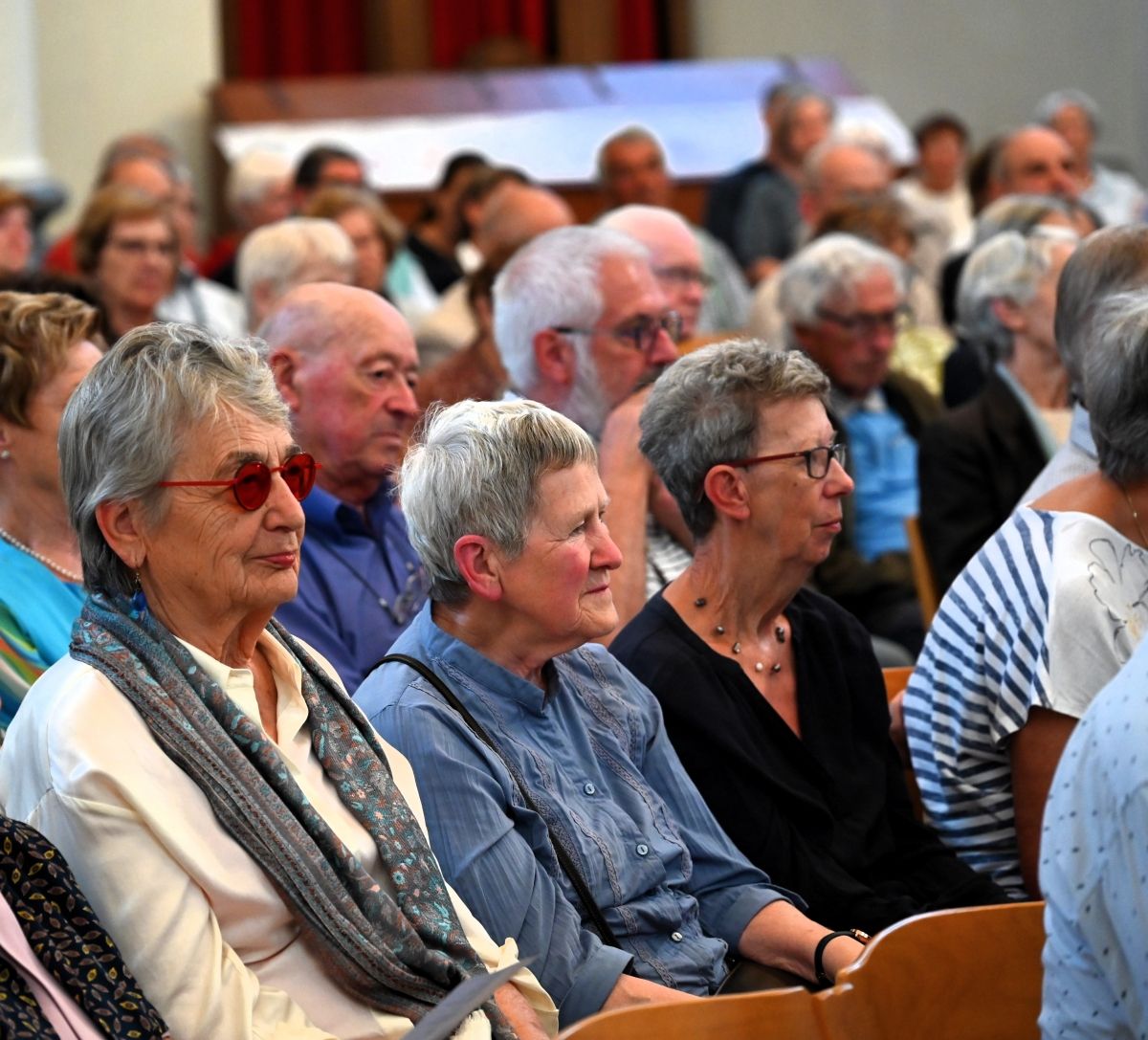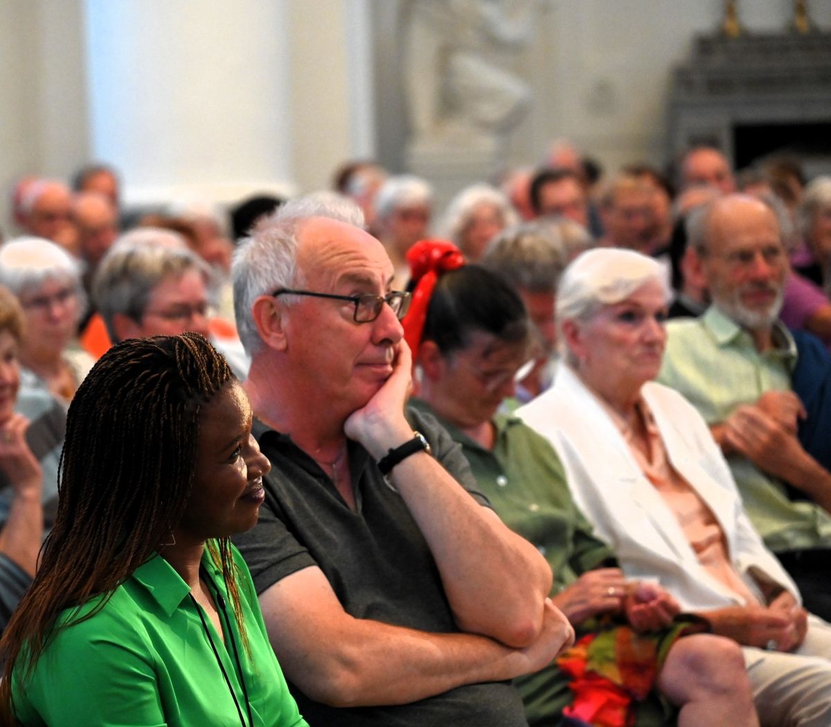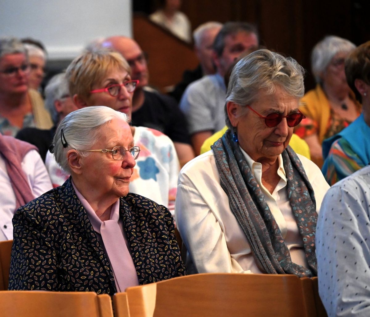 Collega-Vredesvrouw en goede vriendin Jeanne Devos gaf haar twee jaar geleden tijdens de eerste editie het goede voorbeeld. Jeanne is sindsdien een trouwe aanwezige bij onze Preekstoelen en uiteraard kwam zo ook nu Marie steunen. En ze zag dat het goed was.