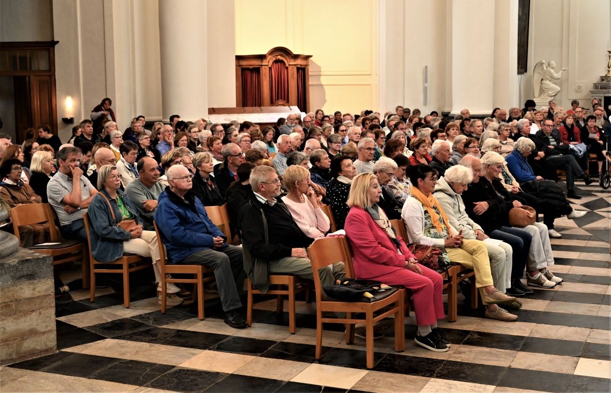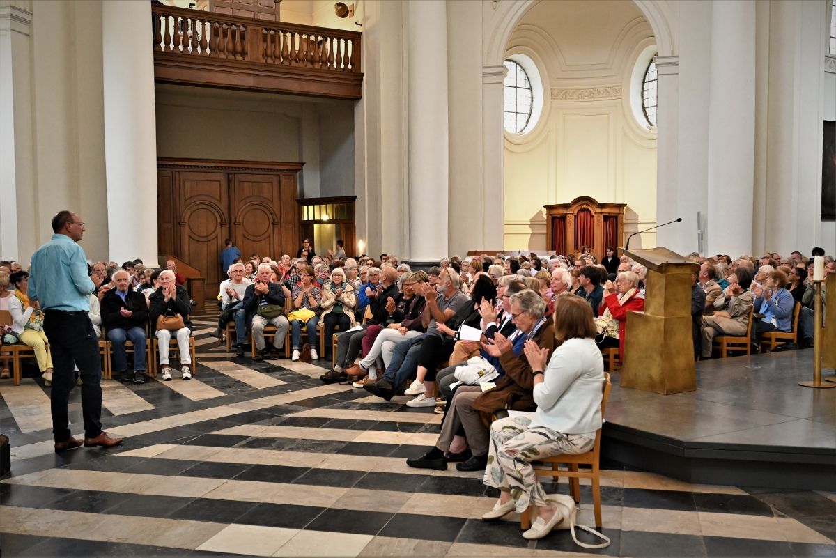 Zijn gedrevenheid (‘toegegeven, er zit een rebel in mij’) leverde hem uiteindelijk een persoonlijke audiëntie van maar liefst 20 minuten bij paus Franciscus op en diens zegen over hem en zijn werk. Geëmotioneerd deed hij het relaas. Het minutenlange applaus in de bomvolle abdijkerk sprak boekdelen.