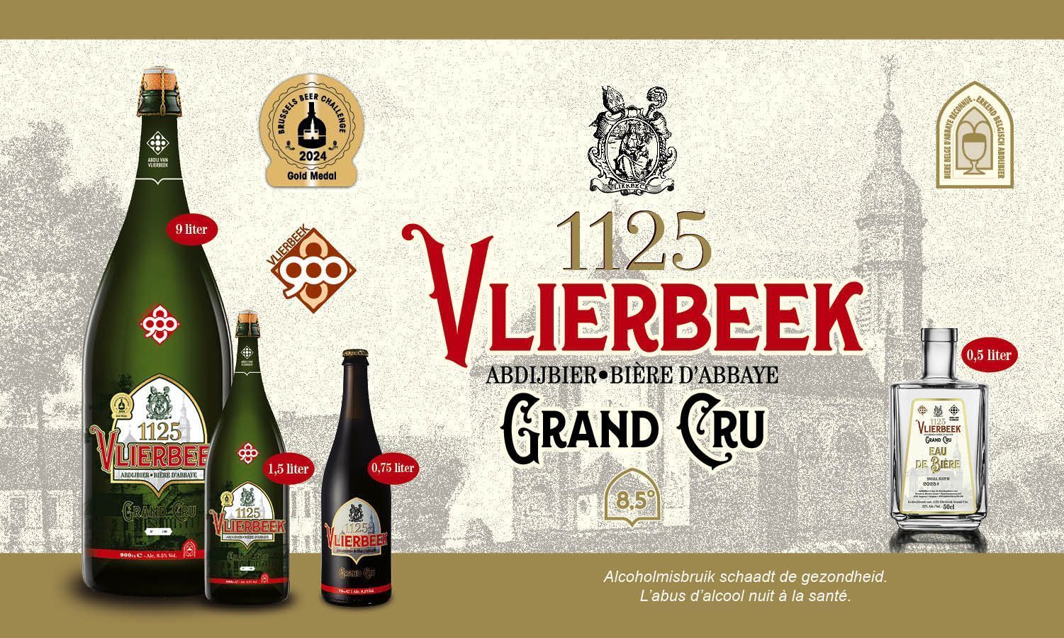 Warm, krachtig, met een fluwelen lange afdronk… een erkend goudblond abdijbier met een hemels karakter. Zo kennen we intussen onze ‘Vlierbeek 1125 Grand Cru’, een naam die trouwens verwijst naar de ontstaansgeschiedenis van onze benedictijnenabdij. Met de lancering van dit 8,5 graden sterke abdijbier werd in 2018 de brouwtraditie van onze abdij in ere hersteld. Sindsdien werden al duizenden 33 cl flesjes van dit vloeibare goud gebotteld en gesmaakt. Aan de lancering is heel wat wetenschappelijk onderzoek voorafgegaan. Het Centrum voor Microbiologie van de KU Leuven heeft bijvoorbeeld een exclusieve gist ter beschikking gesteld. Brouwerij Broeder Jacob zorgt voor de productie en commercialisering.