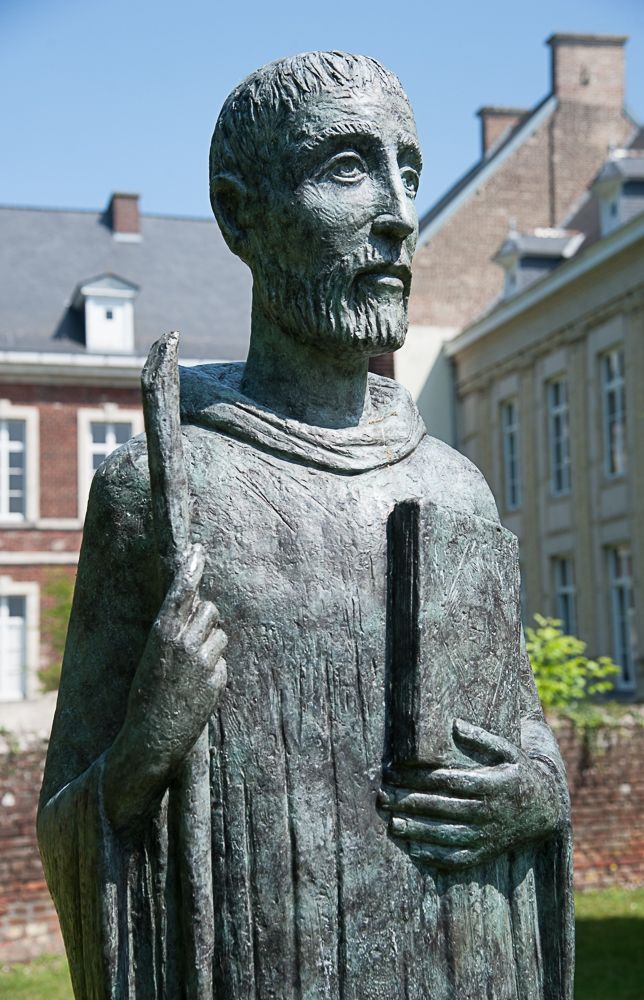 Naast het doorgeven van de fakkel van de gebedstructuur was het streven naar vrede (PAX) essentieel. Het nastreven van eensgezindheid veronderstelde in de eerste plaats dat de vredeswens zou heersen in het hart van elk lid van de gemeenschap. Dit verklaart dat boven vrijwel alle abdijpoorten het woordje "PAX" terug te vinden is en waarom het hier ook een plaats kreeg op de sokkel van dit beeld.