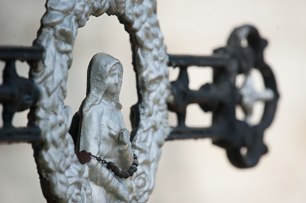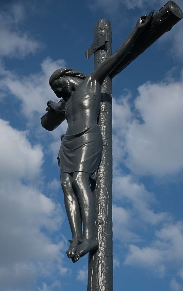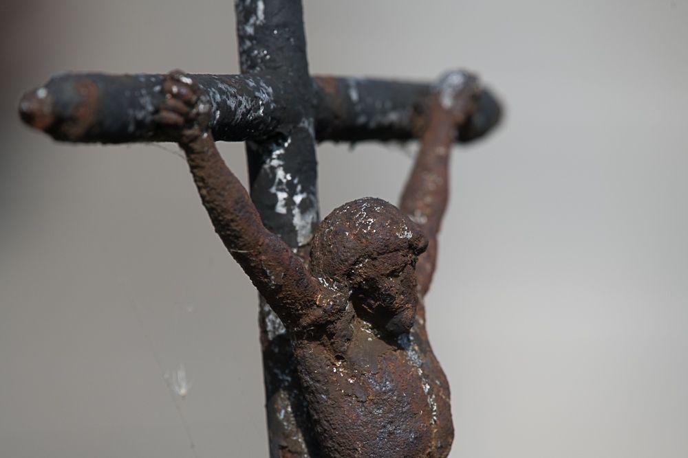 Centraal op het kruispunt van de wandelpaden neemt de calvarie een prominente plaats in. Het gietijzeren kruis met Christusbeeld en een voet in neogotische stijl zou omstreeks 1880 op het kerkhof zijn geplaatst. Het is een werk van de Herentalse ijzergieterij en smederij August Van Aerschot. In 2019 kreeg het een grondige restauratiebeurt. Het gietijzeren beeld werd tijdens dit restauratieproces met veel zorg gezandstraald, gemetalliseerd en gespoten waarna het teruggeplaatst werd op zijn vertrouwde plaats te midden van het oude kerkhof.