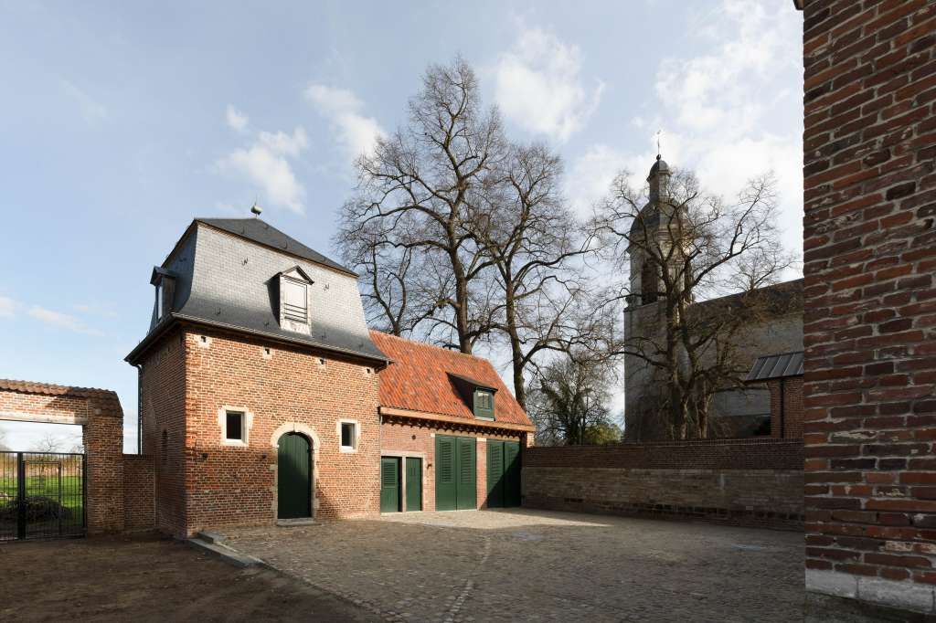 Een brede 18de-eeuwse poort geeft toegang tot een complex dat tot 1999 als boerderij was ingericht.