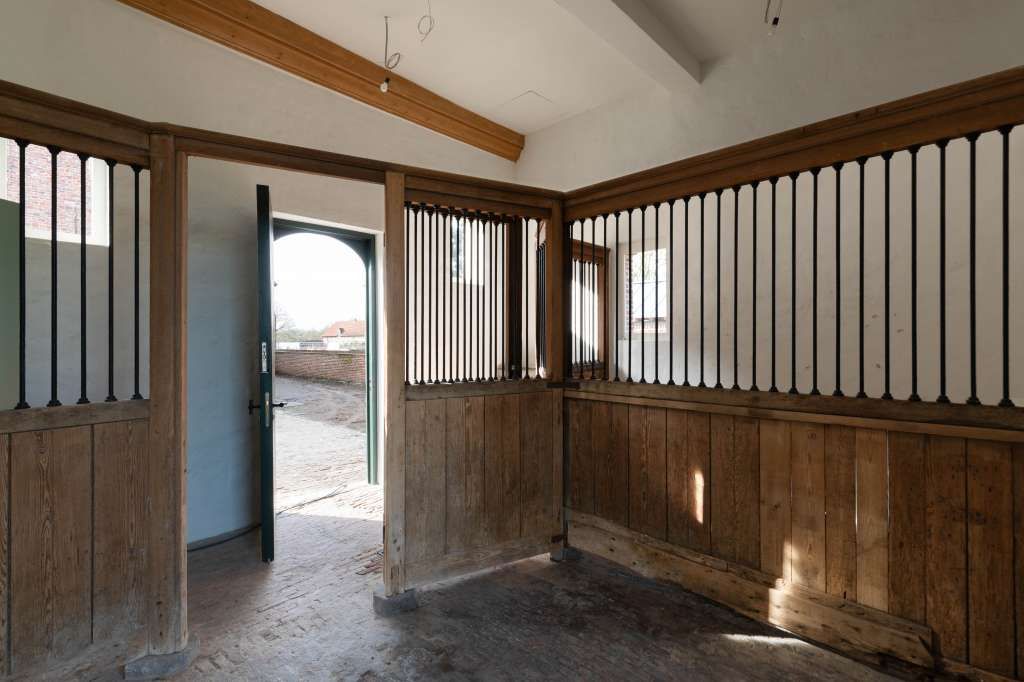 Het gebouw onder het mansardedak werd pas later als paardenstal ingericht en is duidelijk midden 18de eeuws. Vorm en baksteenformaat zijn identiek aan het formaat dat gebruikt werd bij de 18de eeuwse vergroting van het Oud Abtskwartier. De paardenstal was oorspronkelijk opgevat als een gebouwtje met een gelijkvloers en een verdieping. Het geheel werd met een eigen haard verwarmd. Dit paviljoen vormde een belangrijke schakel in de 18de eeuwse uitbouw van het abtskwartier tot wellicht “place de récréation”. Dit gebouwtje stond op een belangrijk snijpunt tussen de enorme groententuin, de weide met